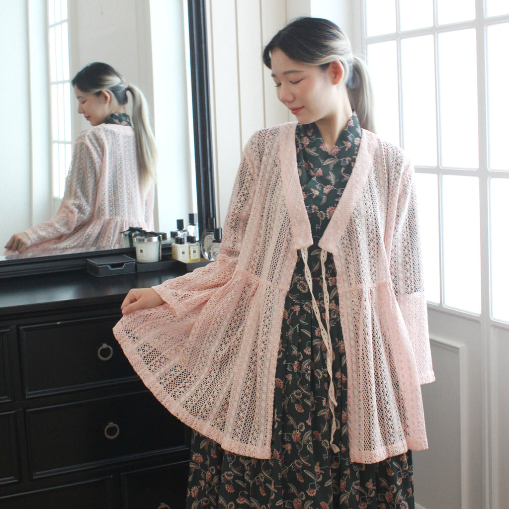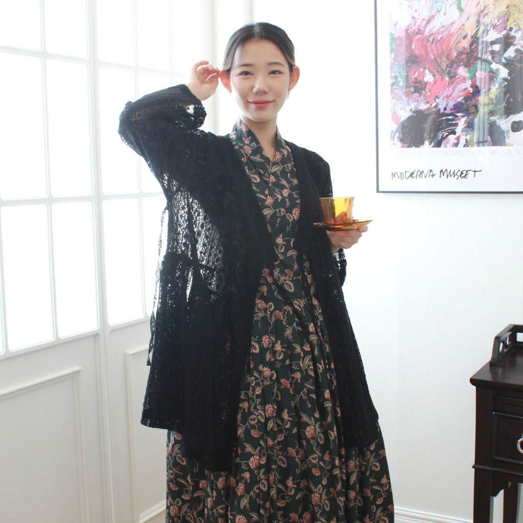 Enjoy the beauty of hanbok in your daily life with the Lace Mini Cheollik Cardigan. Perfect for summer travel, vacations, or honeymoons, this cardigan combines traditional hanbok aesthetics with modern practicality.