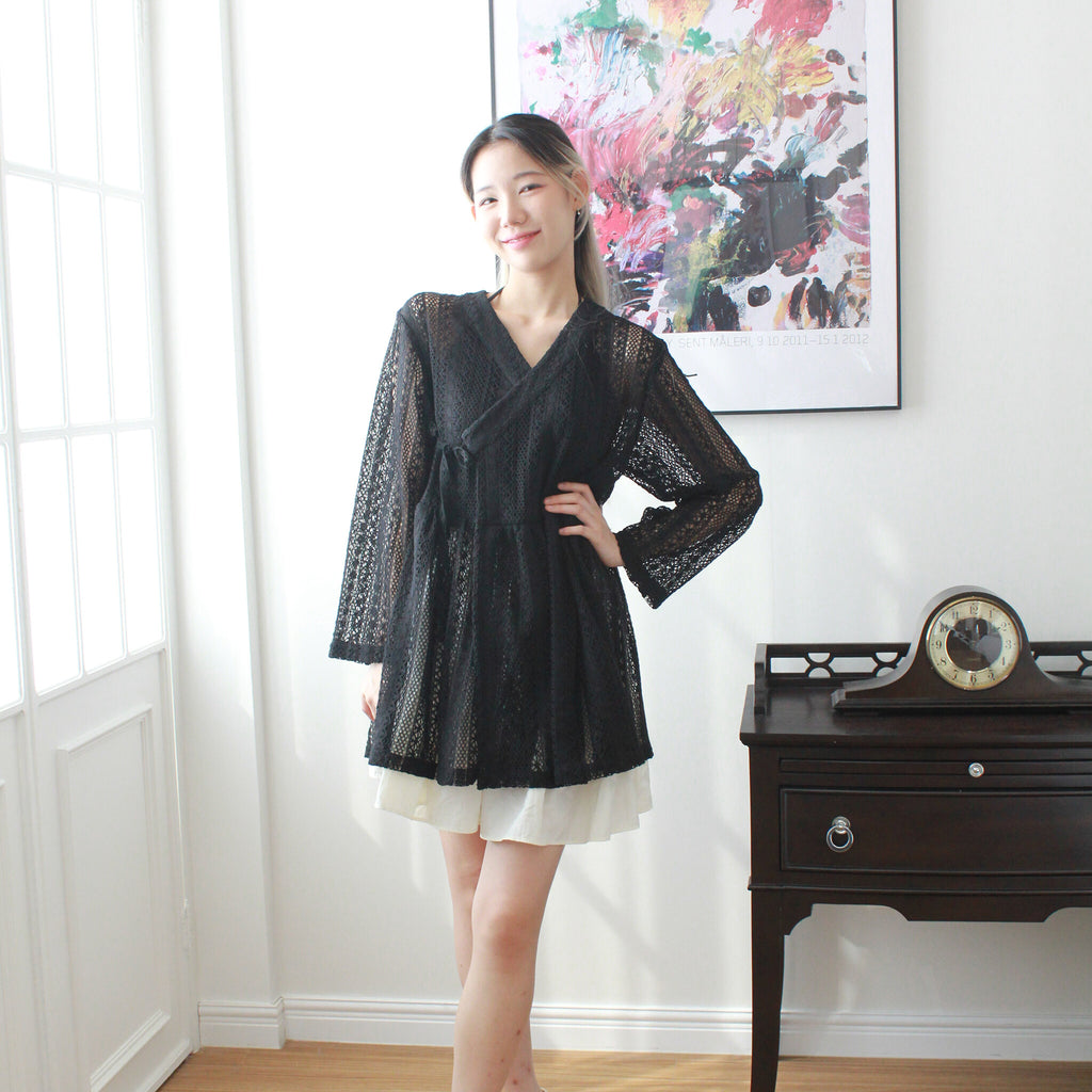 Summer Hanbok-Inspired Cover-Up: Lace Mini Cheollik Cardigan
