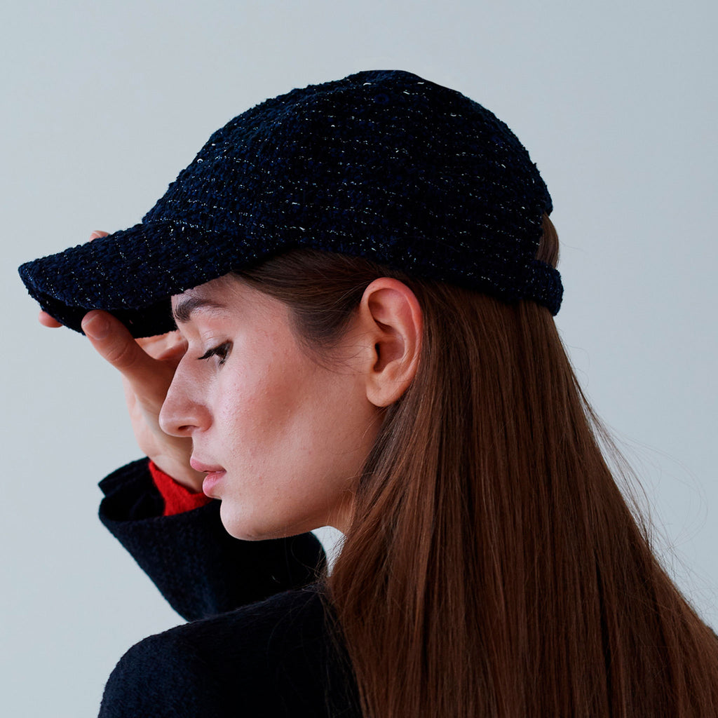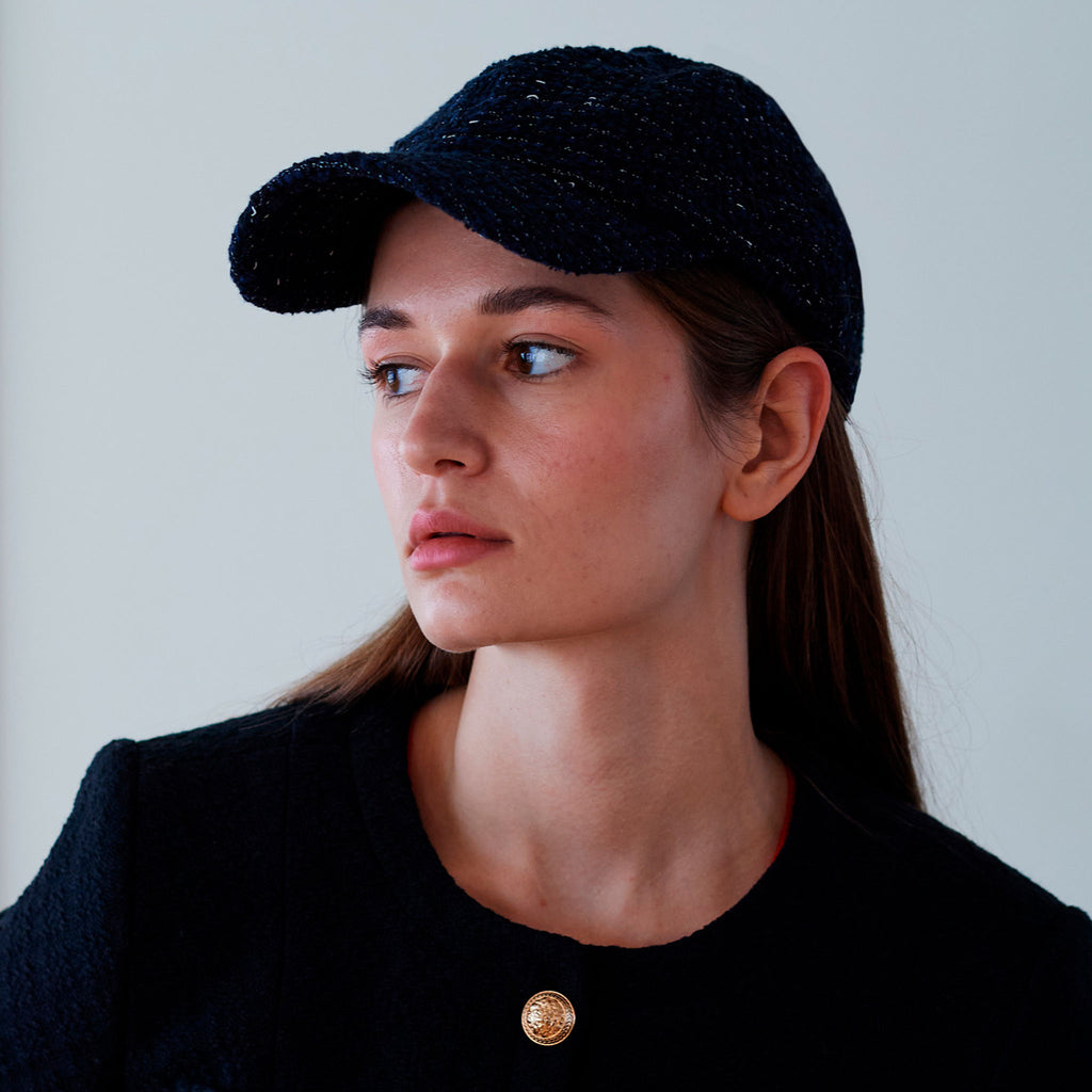 The Tweed Baseball Hat combines luxurious tweed fabric with a sleek and versatile design. Perfect for casual outings or pairing with formal suits, this hat brings a refined elegance to any outfit.