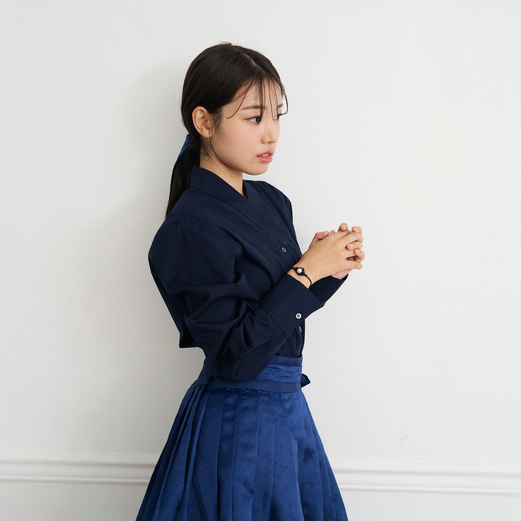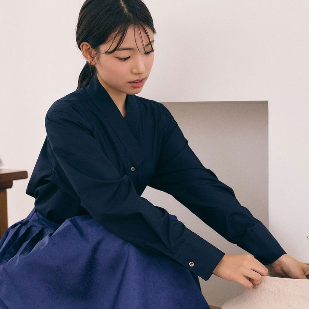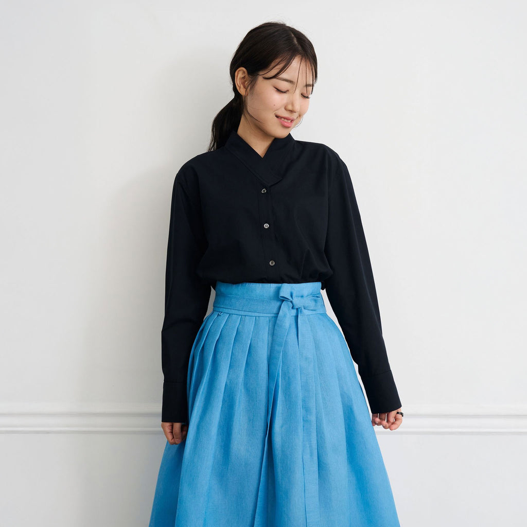 With a long silhouette that covers the hips, this shirt pairs effortlessly with jeans, skirts, or even traditional Hanbok skirts for a modern-meets-traditional look. -