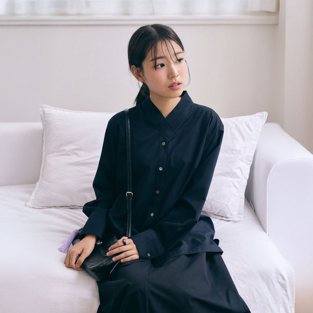 The Demure Hanbok Mokpangit Shirt takes inspiration from the refined beauty of mid-Joseon dynasty clothing, specifically the traditional "Mokpangit" collar. Designed to maximize understated elegance, this shirt harmonizes the collar and overall color palette for a clean, versatile, and modern aesthetic that seamlessly fits into daily wear.