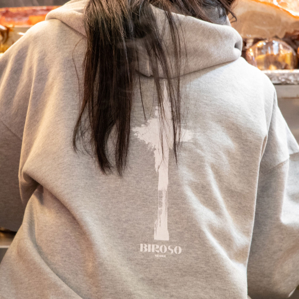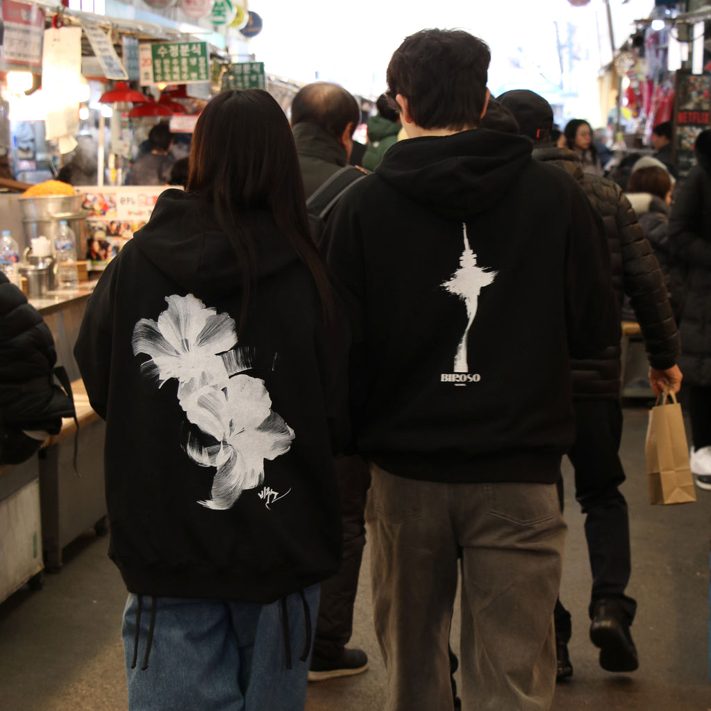 We are delighted to introduce BIROSO’s first hoodie, the result of three months of intensive collaboration and meticulous craftsmanship. The front features the Korean calligraphy for “비로소” (pronounced bi-ro-so), inspired by the country’s traditional calligraphy art form. On the back, you’ll find Seoul’s most iconic landmark, Namsan Tower, depicted through powerful brushstrokes. By blending streetwear aesthetics with an authentic Korean sensibility, this hoodie offers a unique cultural experience that reflects BIROSO’s values.