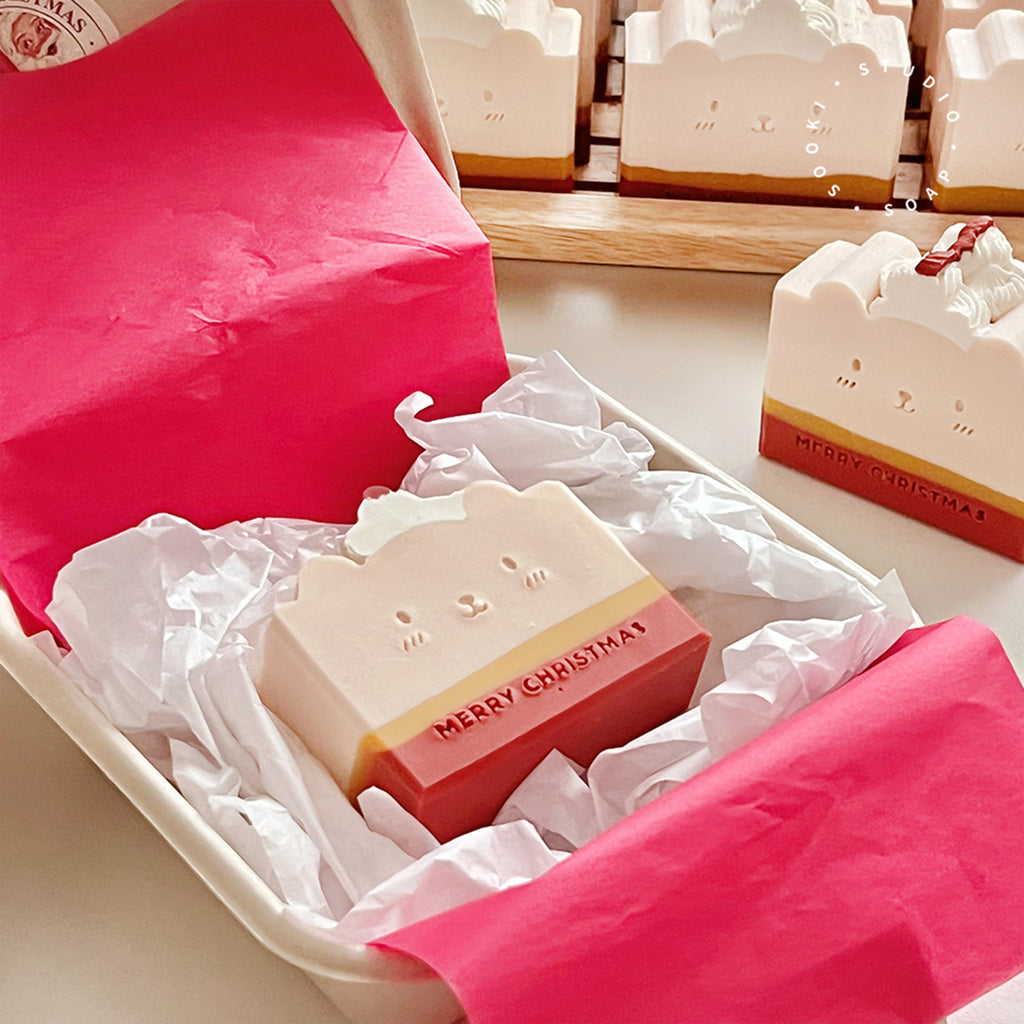 - Featuring a cute teddy bear-inspired character, this soap embodies the festive and loving spirit of Christmas.